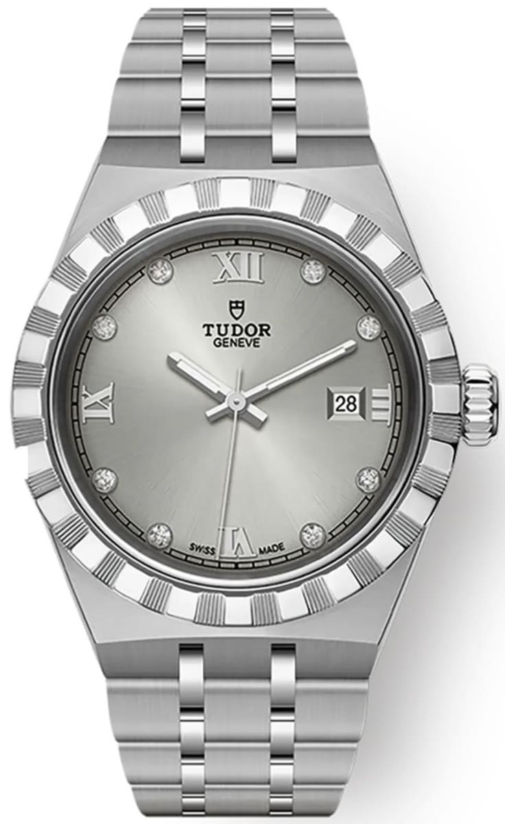 Tudor Royal Silver Diamond Dial Stainless Steel Unisex Watch M28300-0002 28mm
