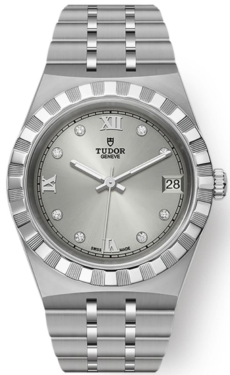 Tudor Royal Silver Diamond Dial Stainless Steel Unisex Watch M28400-0002 34mm